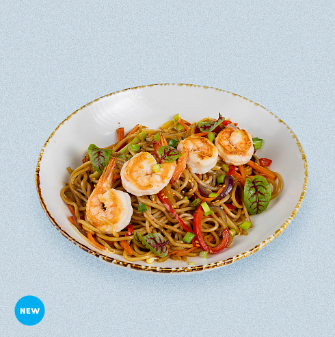 лапша Рамен с креветками и овощами в традиционном соусе Вок