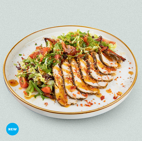 нежное филе индейки в манговом соусе с салатом в пикантном соусе с перечным арахисом